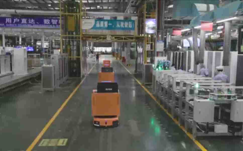 为车载冰箱物流配送打造的智能解决方案,,包含产中物流通过潜伏举升AMR搬运至线边,,产后成品物流智能仓储,,,流程包含产中物流智能齐套入库,,线边安灯叫料AMR智能配送至线边,,成品入库、、、出库,,通过无人堆高车机器人,,智能仓储管理替代人工作业管理,,,,实现更高存储、、更高效率、、、更具柔性化的解决方案。。。
